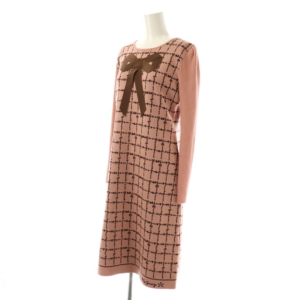 エムズグレイシー M S GRACY リボン付きチェック柄ニットワンピース 膝丈 長袖 38 ピンク AT OSの検索結果