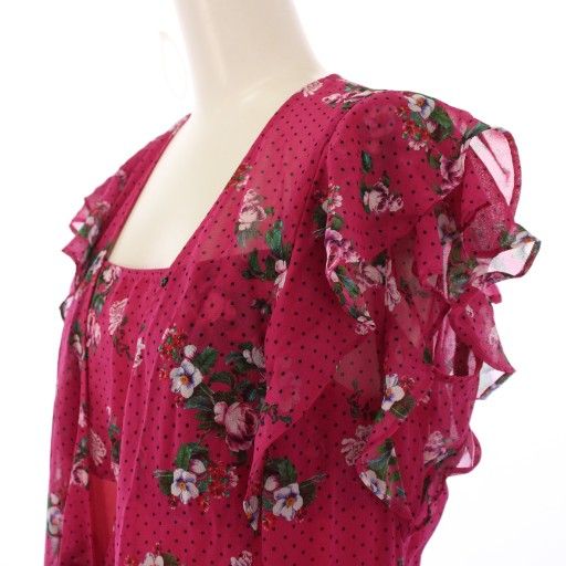 ルルウィルビー Loulou Willoughby フ ワンピース ひざ丈 キャミソール 半袖 シアー シースルー 花柄 1 ピンク BB BLACKFEMALETHERAPIST_ORG