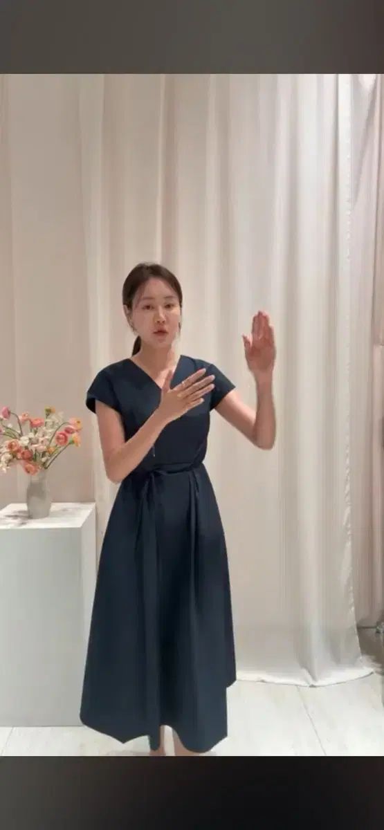 HERMES エルメス ネイビー シルク混 リボンタイ ワンピース 34