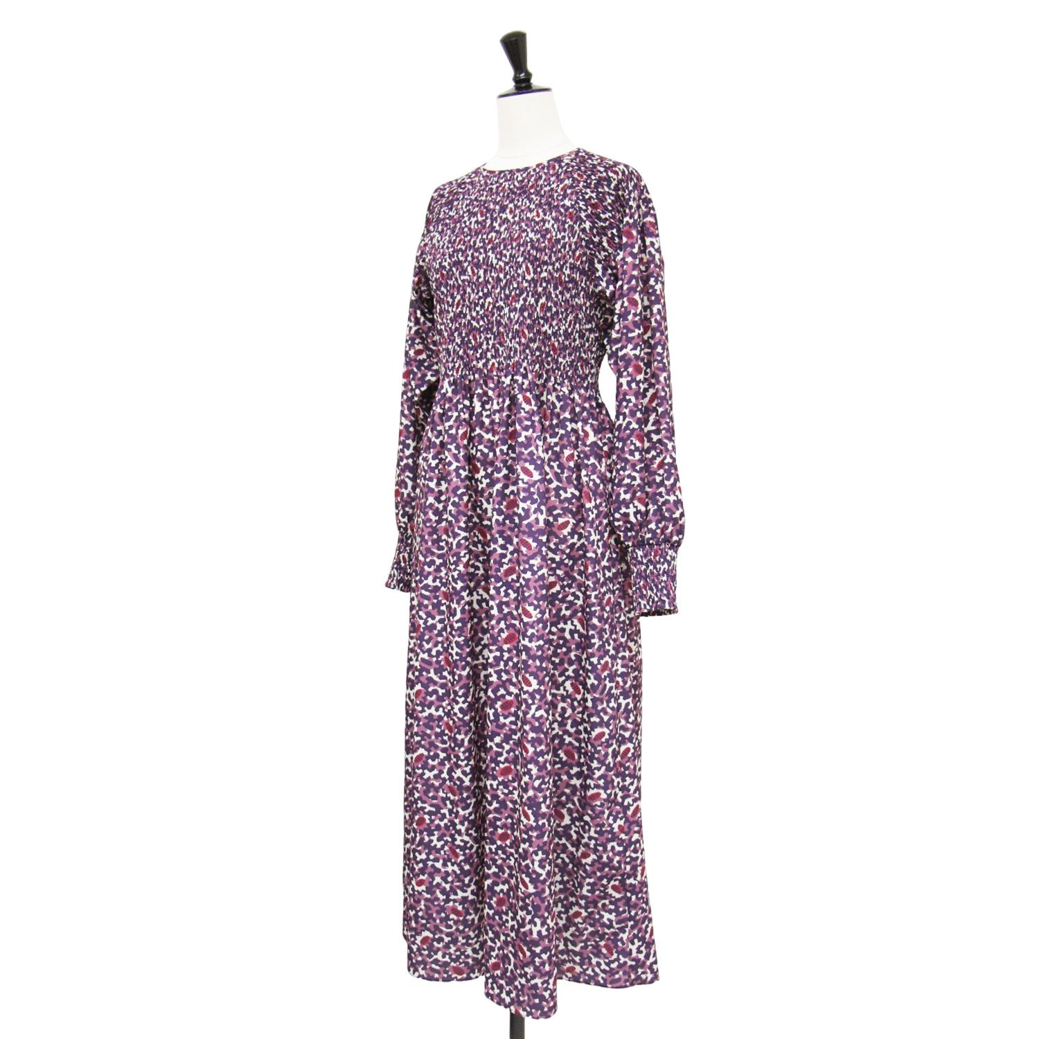 SOULEIADO ソレイアード ワンピース 紫 ライトパープル サイズ 36 9号 20秋冬 ポリエステル プリント シャーリング ワンピース ドレス 長袖 マキシ丈 ギャザー くるみボタン 総柄 オールインワン レディース BLACKFEMALETHERAPIST_ORG