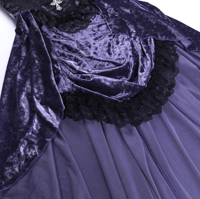 V ネック ゴシック風 紫のベロアワンピース オーバーシャツ ロリータ トレーニングドレス ヒップホールドスカート フォーマルドレス メッシュトップス ロングスカート BLACKFEMALETHERAPIST_ORG