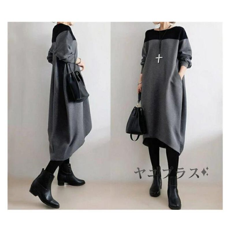 ワンピース ロング レディース ロング ワンピース コクーンシルエット ワンピ ロング丈 クルーネック 配色 バイ 春 秋 冬 長袖 体型カバー 大きいサイズ シンプル ゆったり きれいめ お洒落 weixz177 BLACKFEMALETHERAPIST_ORG