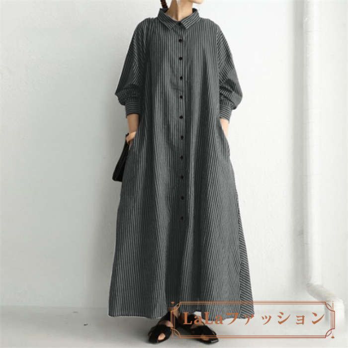 シャツワンピース シャツワンピ ロングシャツ 2way ワンピース レディース 綿麻ワンピース リネンワンピース ストライプ Aライン ロング丈 大きいサイズ リネン 長袖 マキシワンピース マキシ丈 綿麻混 ゆったり 体型カバー yiping001 BLACKFEMALETHERAPIST_ORG