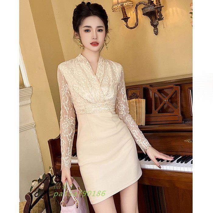 トップレース仕立て ウエスト長袖ショートドレスワンピース ベージュ キャバ スナック 服 韓国 レディース pai5a790186の検索結果