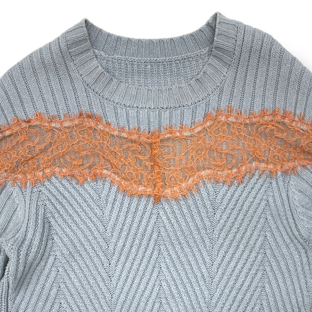 GRACE CONTINENTAL グレースコンチネンタル レース切替ニットワンピース ロング セーター 長袖 編み込み 01201 33079-00 青 ブルー オレンジ 36サイズ レディース 秋 冬 ゴーゴー古着久喜倉庫店 No.1276 BLACKFEMALETHERAPIST_ORG