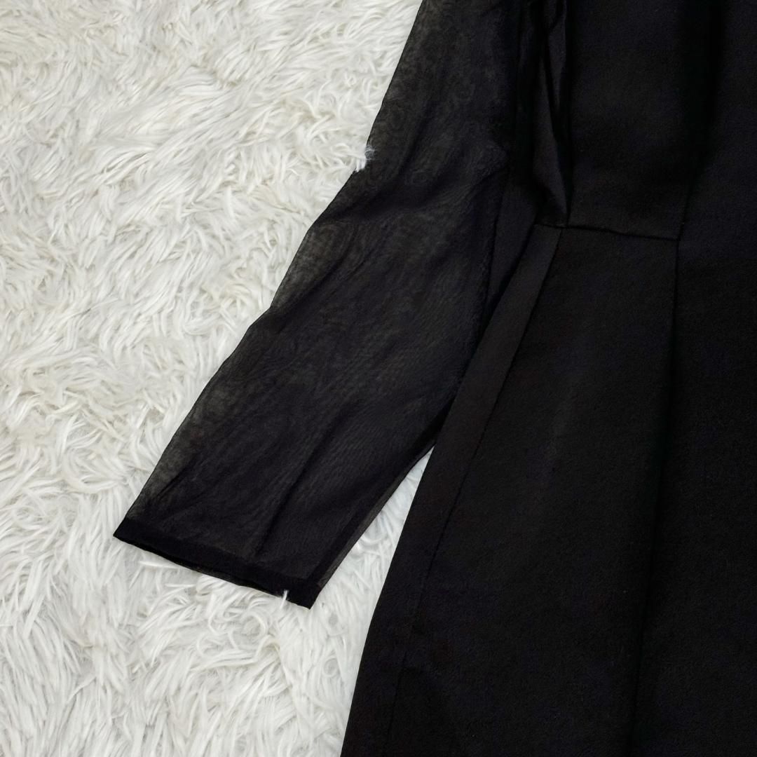 INDIVI Aライン ワンピース ウール混 ロングワンピース ドレッシー グレー 黒 7分袖 M