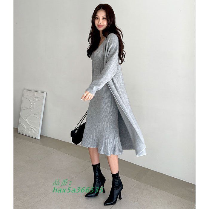 長袖カーディガン付き ノースリーブロングタイトニットワンピース グレー レディース おしゃれ デート 上品 韓国 大人 hax5a366535の検索結果