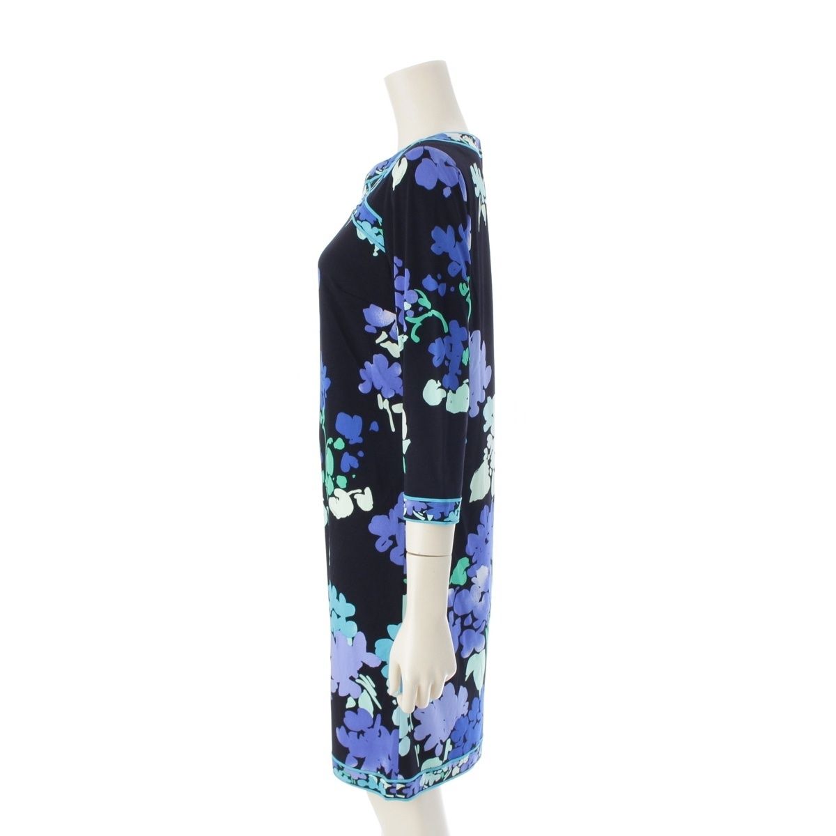 レオナール アセテート×ポリエステル カンカン フラワー 花柄 総柄 ワンピース ドレス 0150204 ブラック ブルー 36 BLACKFEMALETHERAPIST_ORG