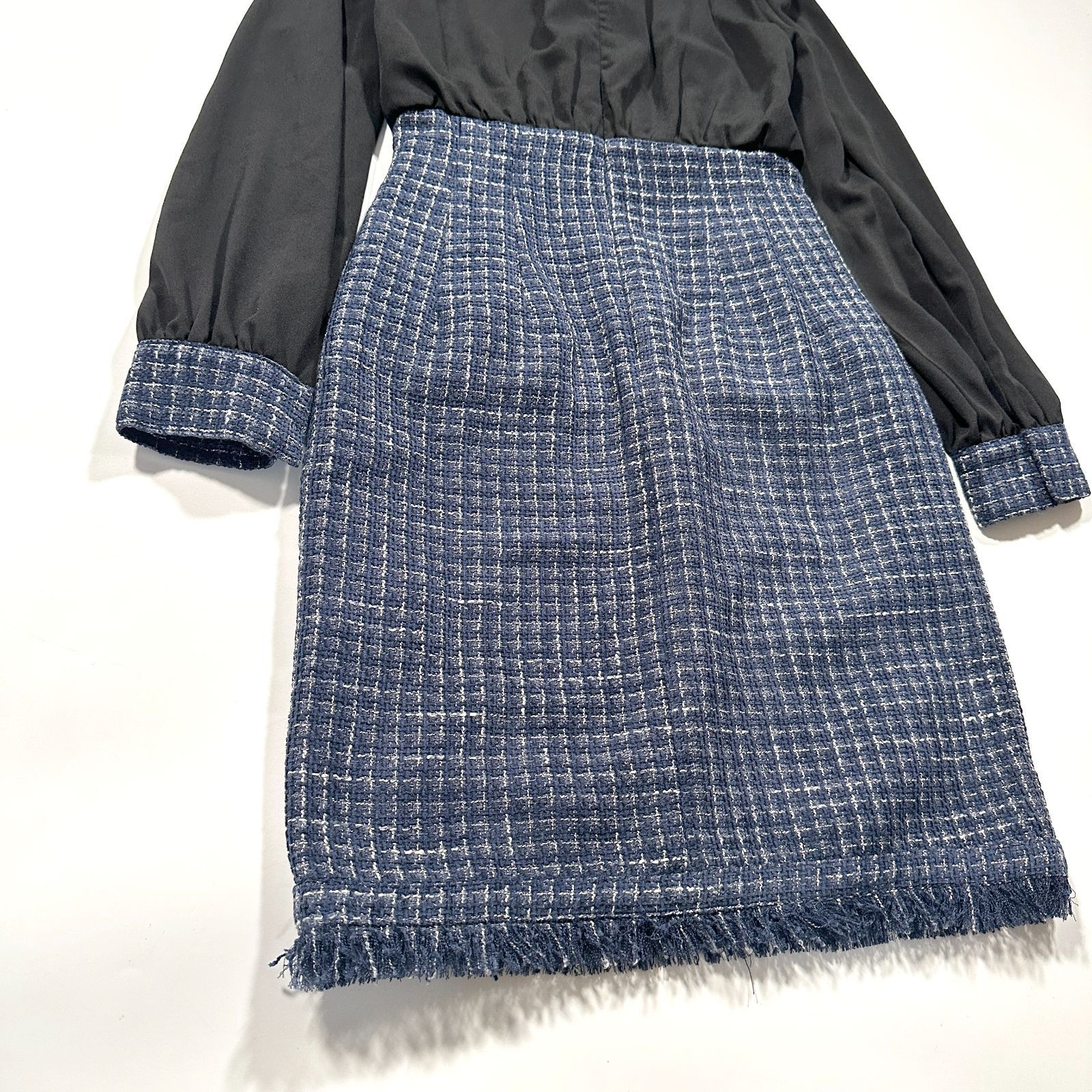 EmiriaWiz エミリアウィズ 切替え ワンピース ツイード チェック ボウタイ 金ボタン フリンジ ブラック ネイビー Sの検索結果
