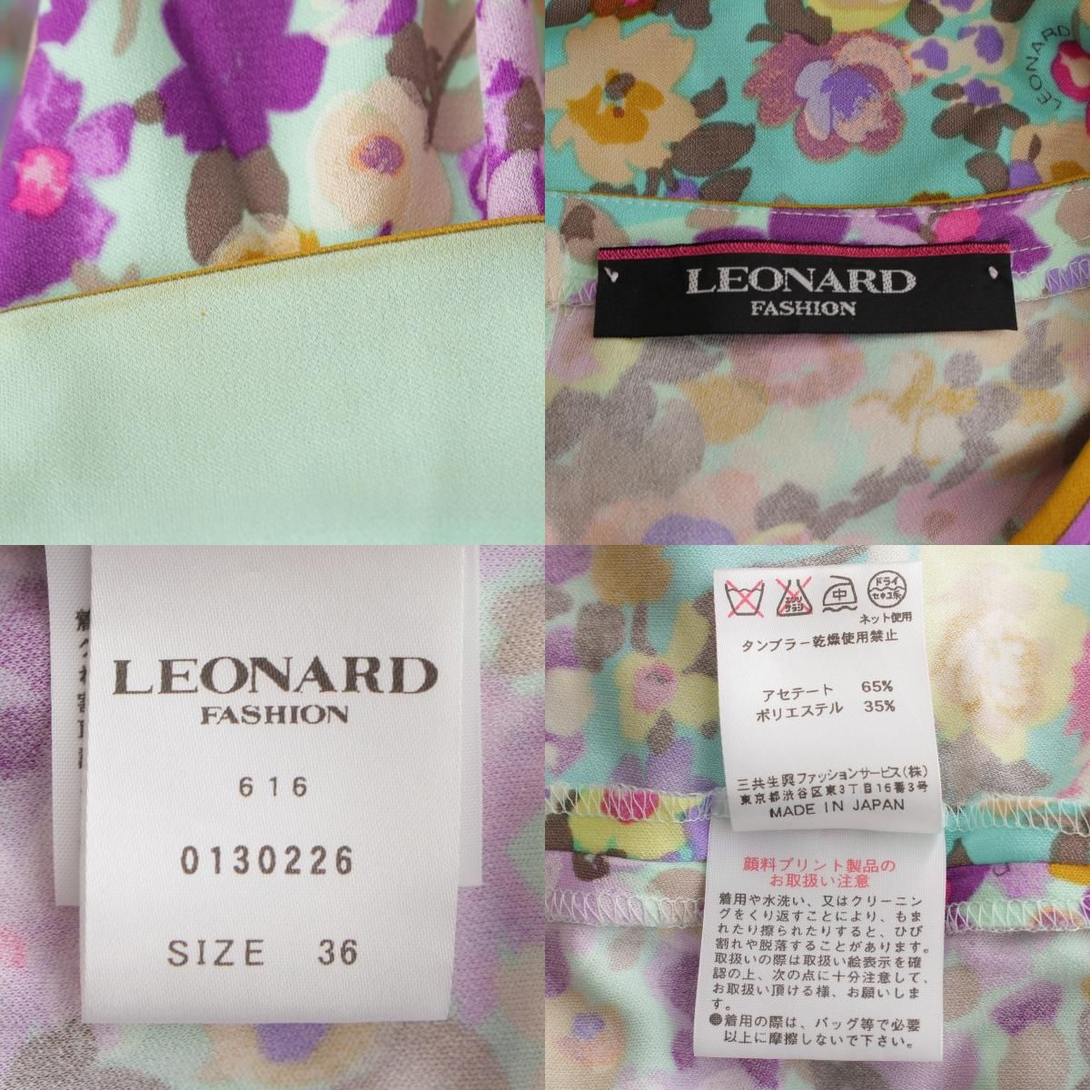 レオナール アセテート×ポリエステル カンカン フラワー 花柄 総柄 ワンピース ドレス 0130226 マルチ 36 BLACKFEMALETHERAPIST_ORG