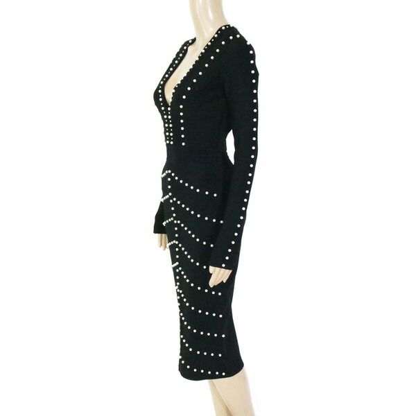 80 OFF エリザベッタフランキ ELISABETTA FRANCHI ワンピース 40 EOP1686 S Mサイズ ブラック レディース 長袖ワンピース パール 膝下ミディ丈 BLACKFEMALETHERAPIST_ORG