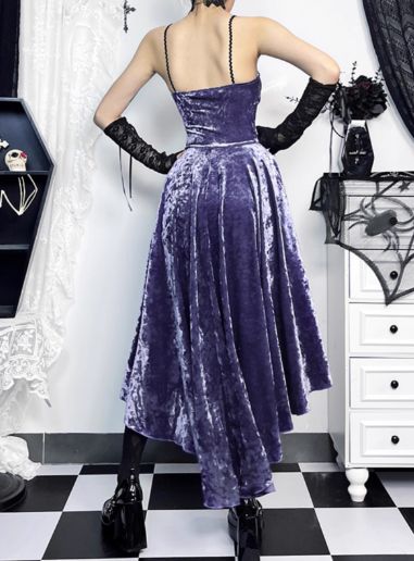 V ネック ゴシック風 紫のベロアワンピース オーバーシャツ ロリータ トレーニングドレス ヒップホールドスカート フォーマルドレス メッシュトップス ロングスカート BLACKFEMALETHERAPIST_ORG