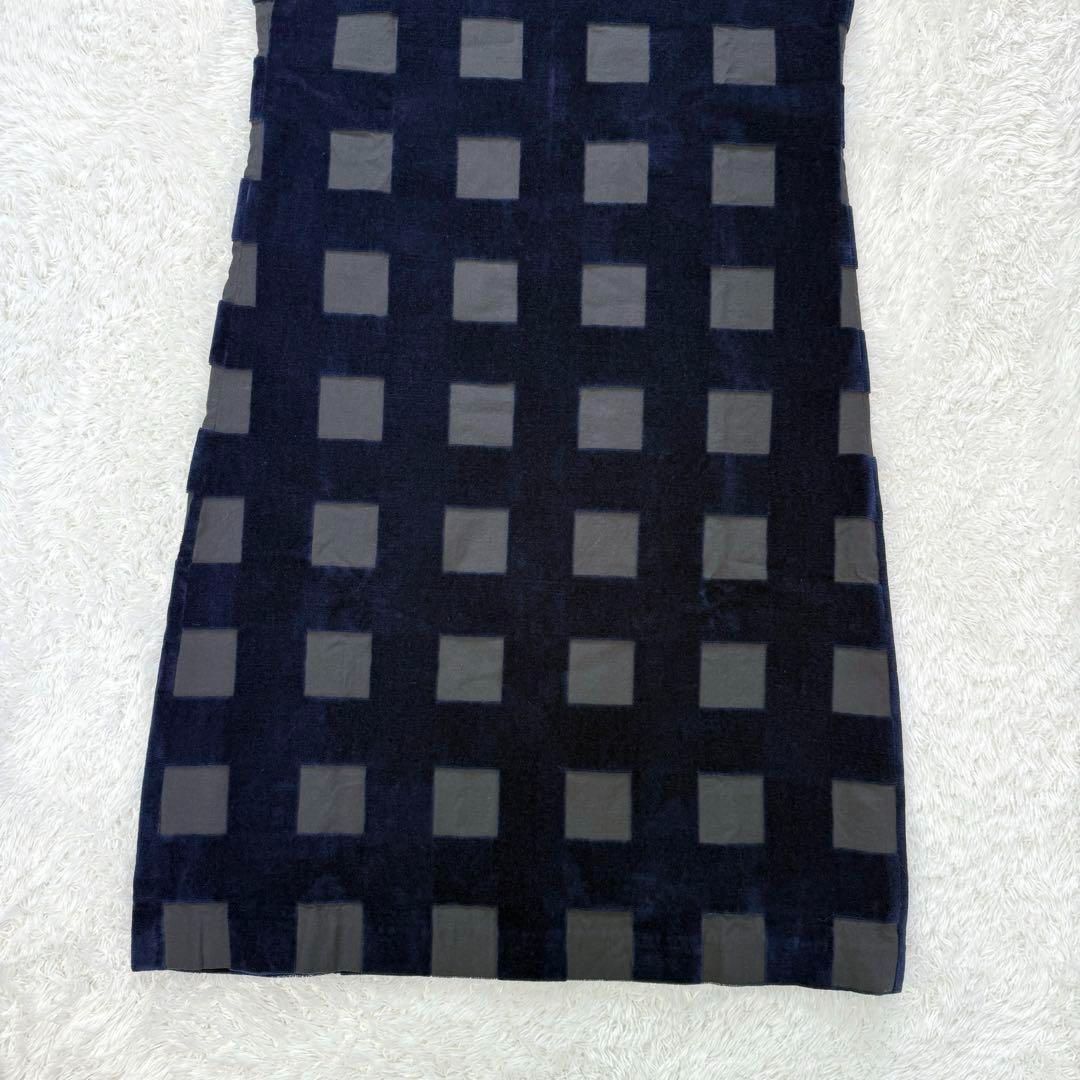 mina perhonen ミナペルホネン moss garden モスガーデン ベルベットジャガード ベロア調 ノースリーブ ワンピース 38 M スクエア 格子柄 チェック柄 ひざ丈 ネイビー グレー シンプル BLACKFEMALETHERAPIST_ORG