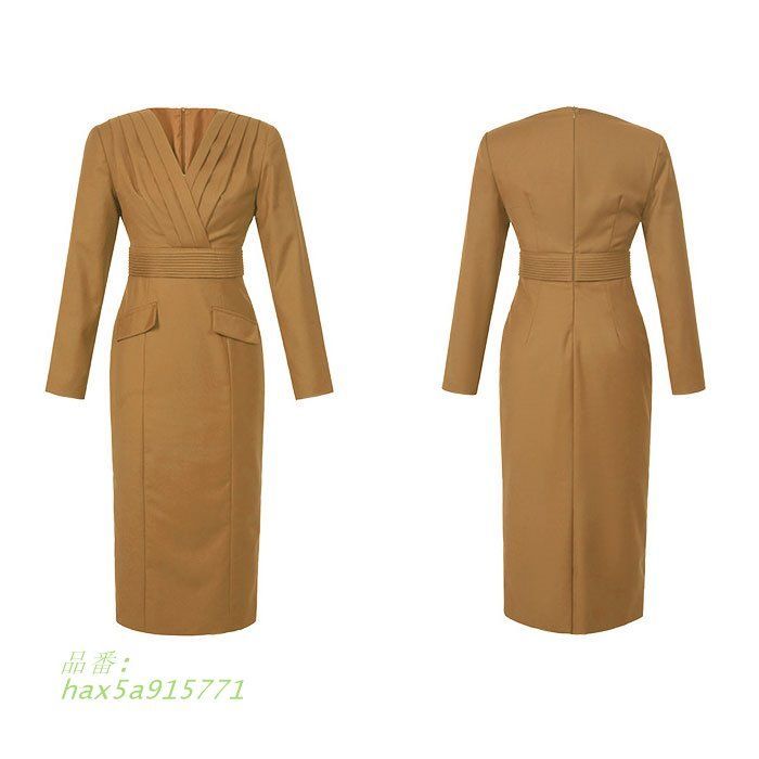 カシュクールVネック ハイウエスト 長袖ロングタイトワンピース 赤 ベージュ 大きいサイズ 大きめ レディース 韓国 hax5a915771 BLACKFEMALETHERAPIST_ORG