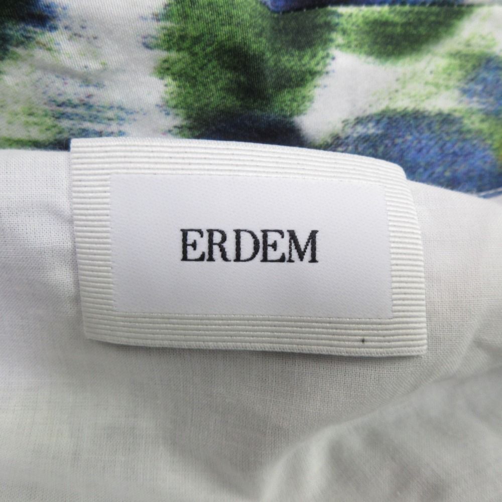 24AW ERDEM アーデム Lucia フラワープリント 半袖 ロングシャツドレス ワンピース I38 ホワイト×グリーン×ブルー レディース 古着 BLACKFEMALETHERAPIST_ORG