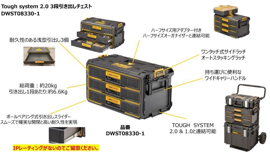 デウォルト DEWALT タフシステム2.0 3段チェスト 工具箱 収納ケース ツールボックス 積み重ね収納 Tough System 2.0 DWST08330-1の検索結果