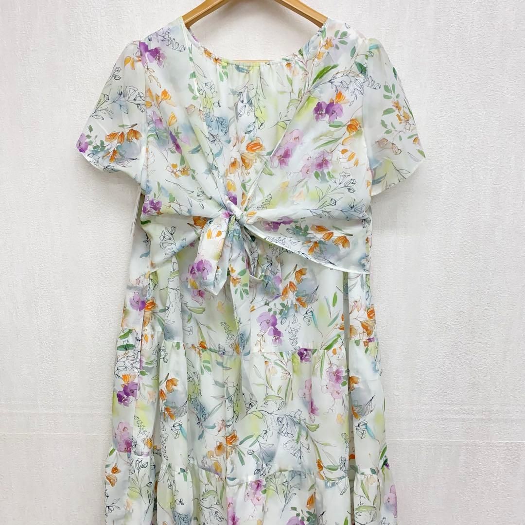 M9 エムズグレイシーワンピース 40サイズ 水彩フラワーバターン オケージョン 女子会 お食事会 華やかM s Gracy