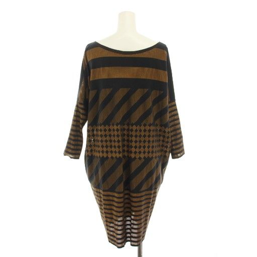 プリーツプリーズ PLEATS PLEASE エイポックインサイド A.POC INSIDE イッセイミヤケ ワンピース ひざ丈 ボートネック 長袖 ボーダー柄 総柄 3 黒 ブラック 茶 ブラウン PP34LT962 YT BLACKFEMALETHERAPIST_ORG