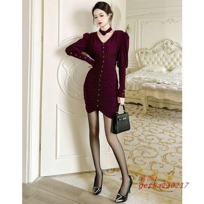 ふんわりギャザー前ボタントップ 長袖ショートタイトワンピース 赤 セクシー キャバ スナック レディース 韓国 ラウンジ get5a120217の検索結果