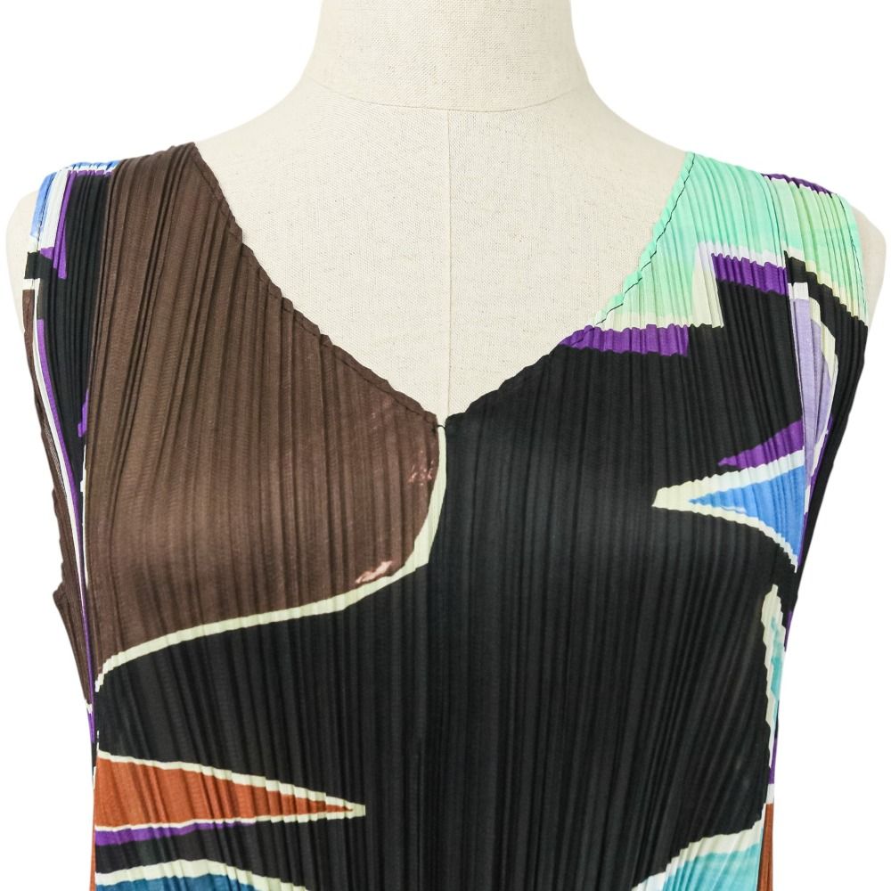 プリーツプリーズ イッセイミヤケ 総柄 ノースリーブ チュニックワンピース PP76-JH766 サイズ4 ブラック マルチ レディース 古着 BLACKFEMALETHERAPIST_ORG