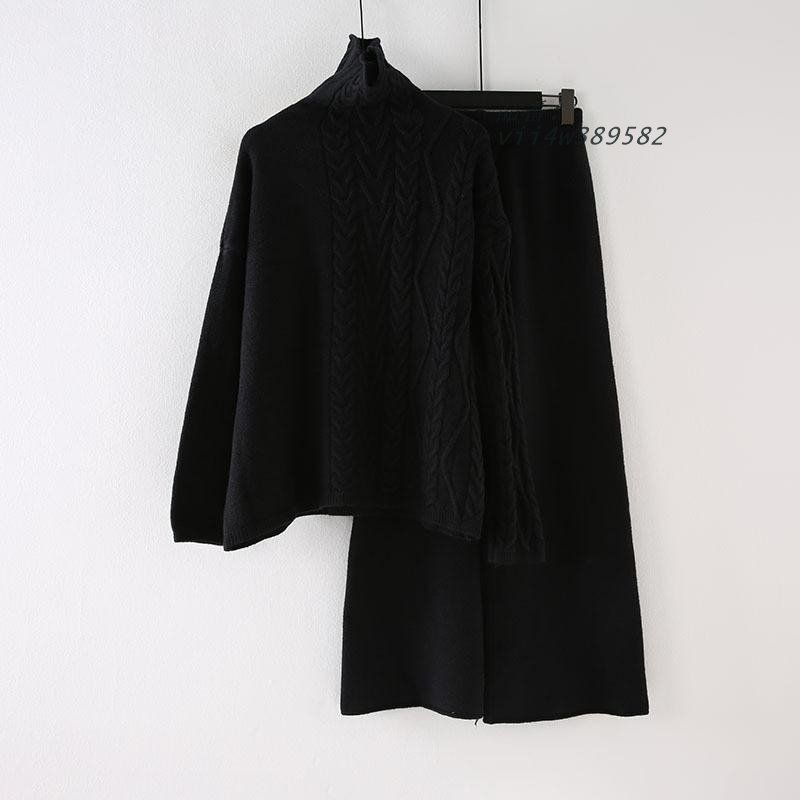 セットアップ レディース ニット 秋冬 ニット ハイネック カジュアル 部屋着 ワイドパンツ 長袖 ゆったり 上下セット セーター vii4w389582 BLACKFEMALETHERAPIST_ORG