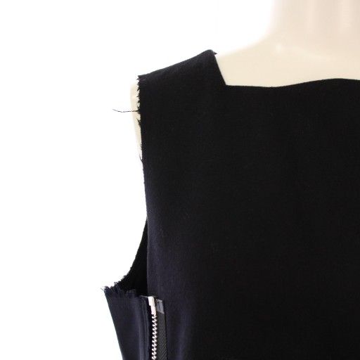 コムデギャルソンコムデギャルソン COMME des GARCONS COMME des GARCONS コムコム AD2017 ワンピース ひざ丈 ノースリーブ スクエアネック ウール 切替 サイドファスナー XS 黒 ブラック 紺 ネイビー BB BLACKFEMALETHERAPIST_ORG