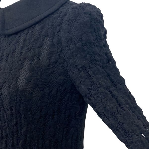 バーバリーブラックレーベル BURBERRY ニットワンピース 長袖 膝丈 襟付き レース Iライン 黒 綿混 毛混 40 L 11号 レディース S5W208 BLACKFEMALETHERAPIST_ORG