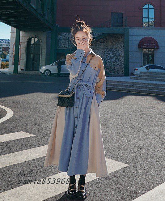 デニムワンピース シャツワンピース 長袖 デニム ワンピース レディース 大きいサイズ 春 Aライン ファッション 韓国 秋 3L ウエストマーク ロングコート am4a853968 BLACKFEMALETHERAPIST_ORG