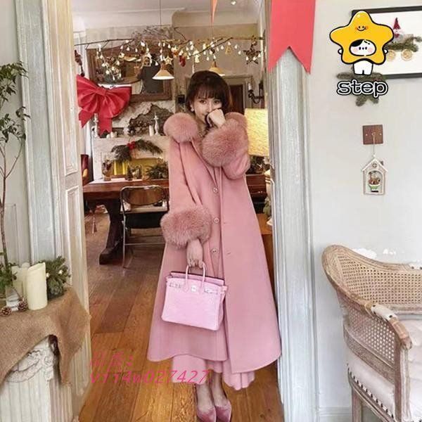 レディース ロングコート 羊毛 フォックスファー カシミヤ混ウール ピンク 体型カバー ファーフード お洒落 アウター 上品 着痩せ ファー袖口 ふわふわ もこもこ vii4w027427の検索結果