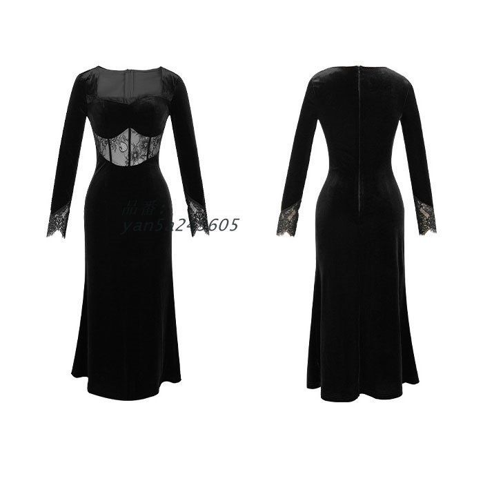 ウエストレース刺繍 ベロア仕立て 長袖ロングタイトドレスワンピース 黒 yan5a243605の検索結果
