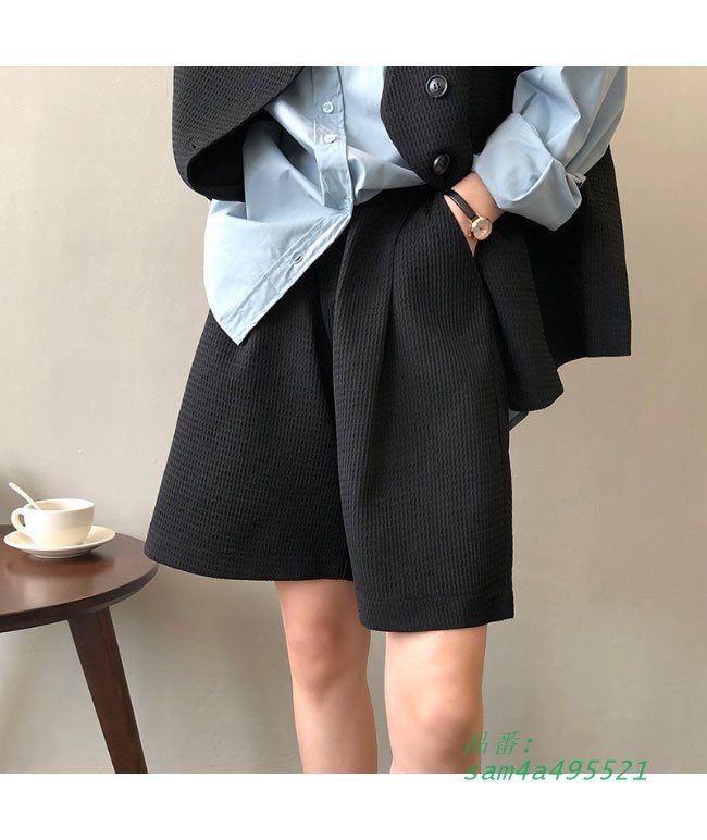 ベスト レディース ショートパンツ 上下セット 2点 短パン 夏 薄手 ワイド ジレ セットアップ 前開き ジレベスト ハーフパンツ チョッキ am4a495521 BLACKFEMALETHERAPIST_ORG