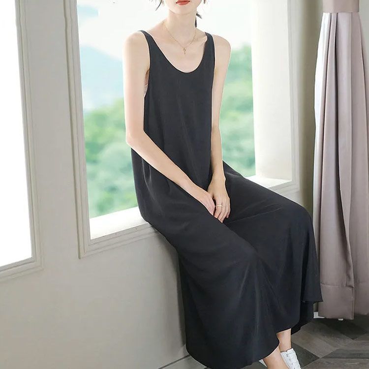 シルク ノースリーブ ワンピース ロングワンピース マキシ丈 マキシワンピース 春 夏 体型カバー 大きいサイズ きれいめ レイヤード風 タンクトップ おしゃれ dkhsh591248 BLACKFEMALETHERAPIST_ORG