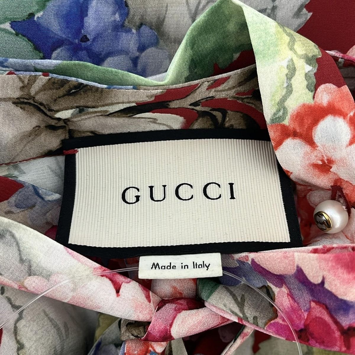 GUCCI グッチ ワンピース サイズ36 S レディース - 453017 ZIP19 レッド×グリーン×マルチ ボウタイ 長袖 ミニ シルク 花柄 パール BLACKFEMALETHERAPIST_ORG