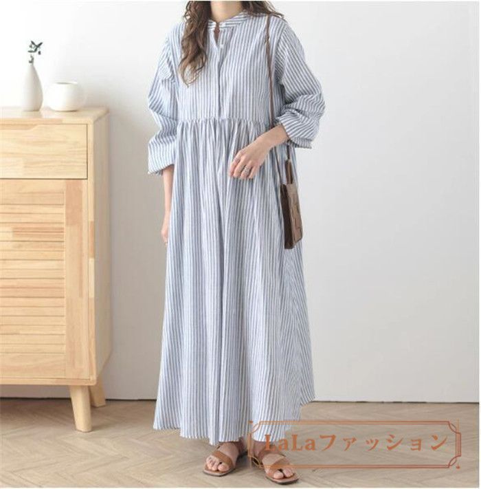 シャツワンピース レディース 春 秋 長袖 ロング シャツワンピ ロングワンピース スタンド チェック柄 ストライプ ロングワンピ タック ワンピース ゆったり ワンピ ふんわり カジュアル キレイめ 着痩せmikixz27の検索結果