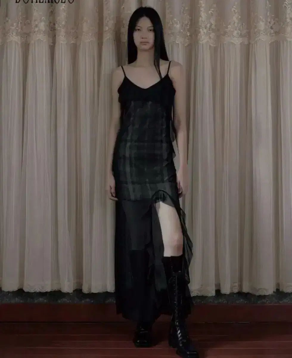 BOHEMSEO ボヘミアンソウル シースルー チェック フリル マキシ ドレス ワンピースの検索結果