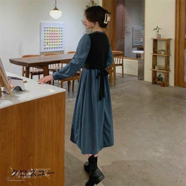 ワンピース 秋冬 長袖 コーデュロイ フ ロング丈 ワンピース ワンピ 大きいサイズ おしゃれ 着やせ 切り替え あったか 566L391 BLACKFEMALETHERAPIST_ORG