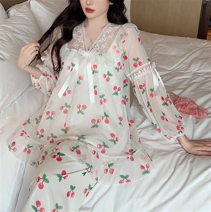 カップ付き 2点セット ルームウェア レディース チェリー サクランボ レース Vネック フリル パジャマ 長袖 薄手 ロング パンツ 上下セット パンツセットmayの検索結果