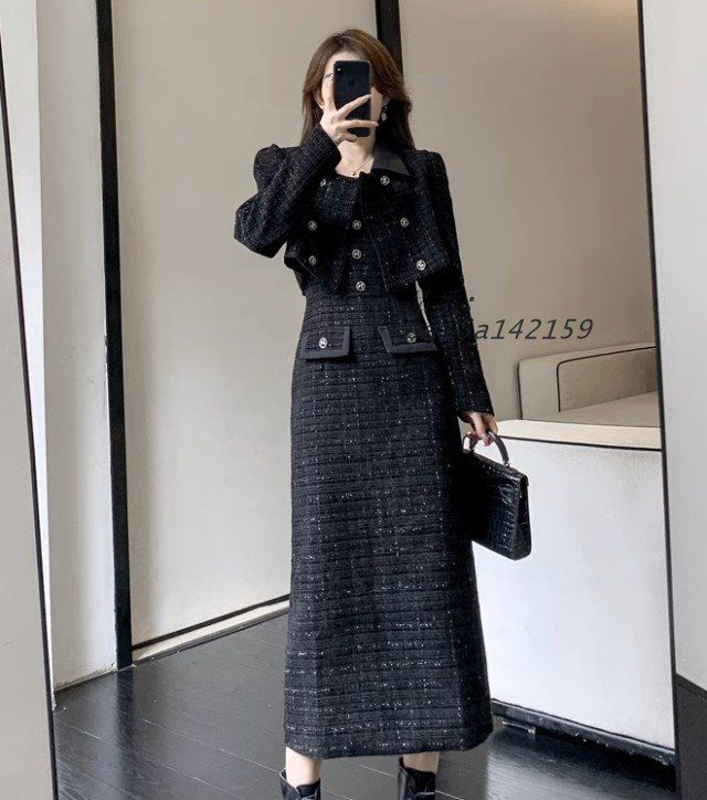 ツイード ワンピース セットアップ レディース きれいめ ツイードジャケット スリット 秋冬 ファッション ロングワンピース 韓国 大きいサイズ pai5a142159 BLACKFEMALETHERAPIST_ORG