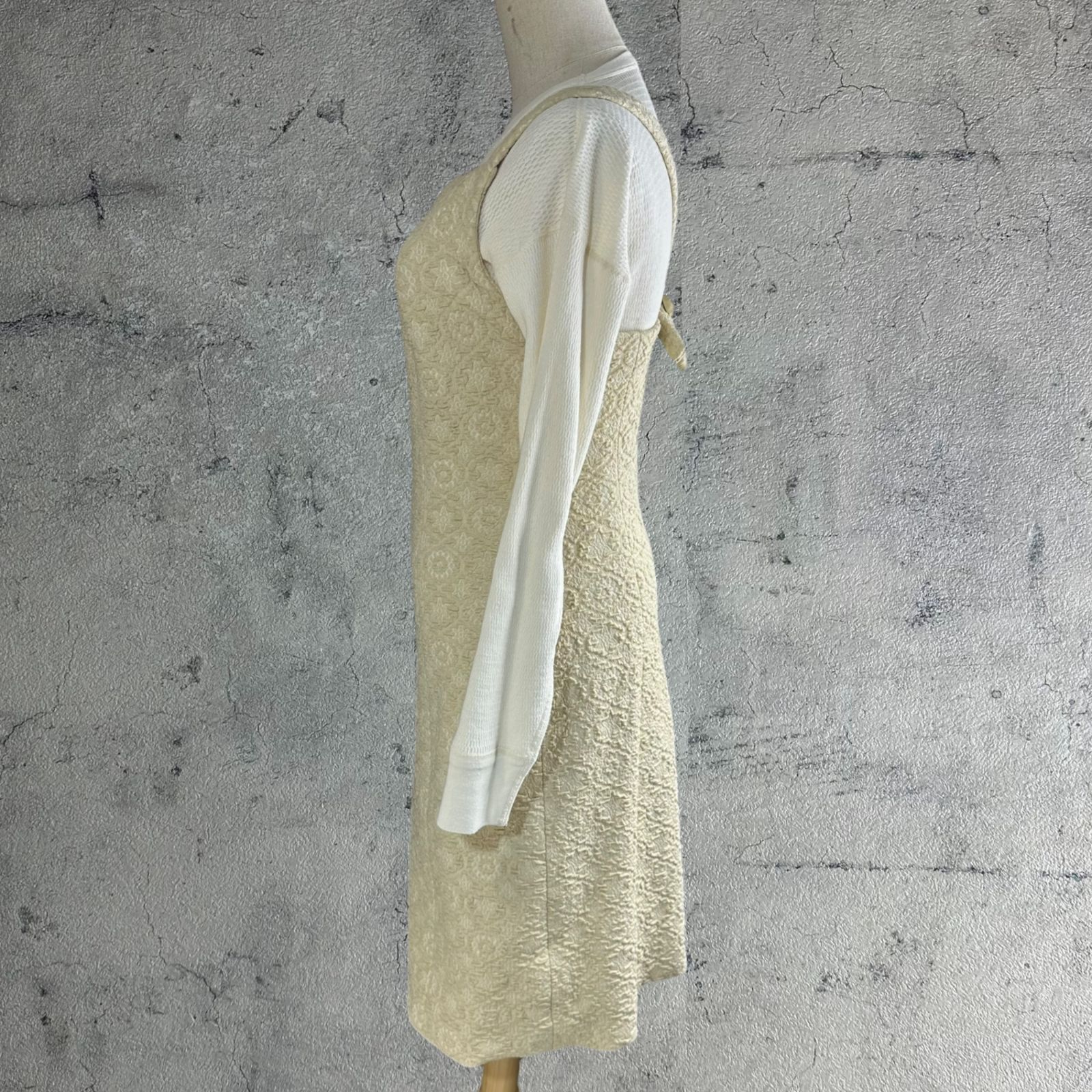 Euro Vintage ヨーロッパヴィンテージ Pivoine_70 s cotton jacquard suspender dress コットンジャガードサスペンダーワンピース 42 Mサイズ程度 ベージュ BLACKFEMALETHERAPIST_ORG