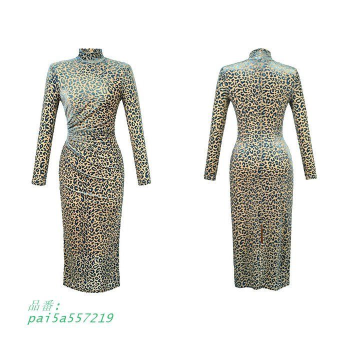 ハイネック仕立て 膝下ミモレ丈 長袖レオパードタイトドレスワンピース セクシー キャバ スナック 韓国 ドレス レディース pai5a557219 BLACKFEMALETHERAPIST_ORG