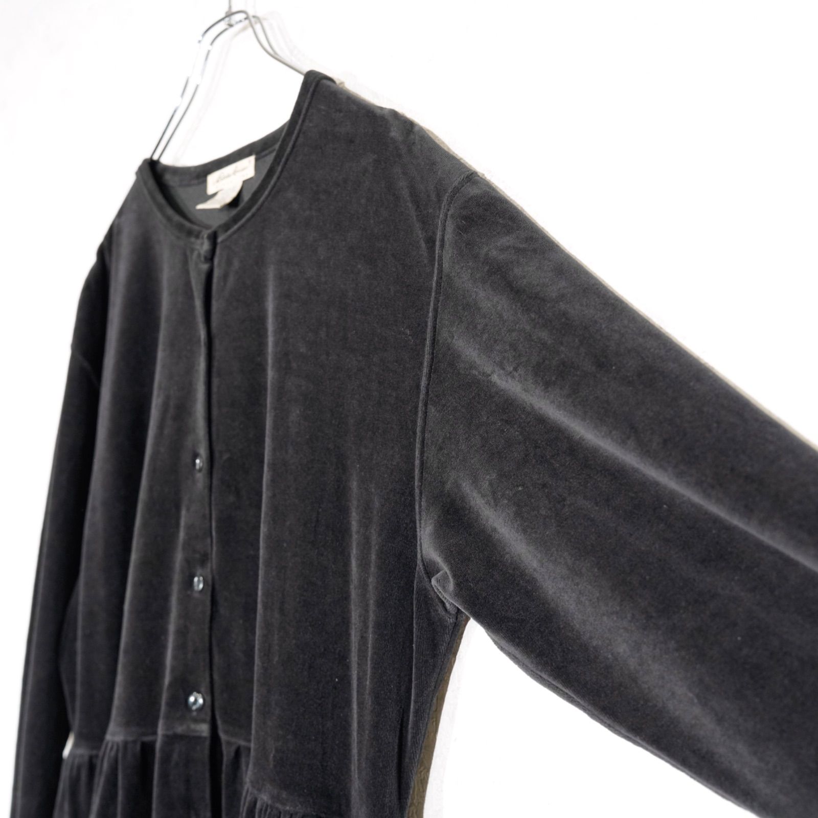 USA VINTAGE Eddie Bauer FRONT BUTTON DESIGN VELOUR ONE PIECE アメリカ古着エディバウアーフロントボタンデザインベロアワンピース BLACKFEMALETHERAPIST_ORG