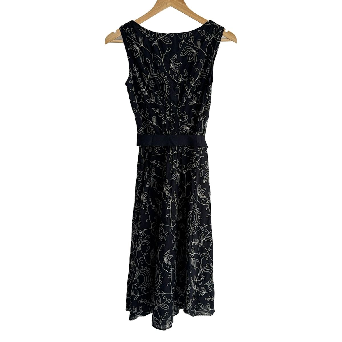 LAURAASHLEY ローラアシュレイ ワンピース サイズ7 S レディース - ダークネイビー×白 Vネック ノースリーブ ひざ丈 刺繍 BLACKFEMALETHERAPIST_ORG