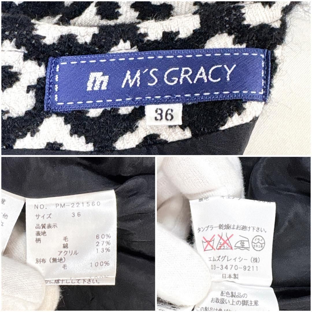 M sGRACY Aラインウール半袖ワンピース 36 黒×白 花柄の検索結果