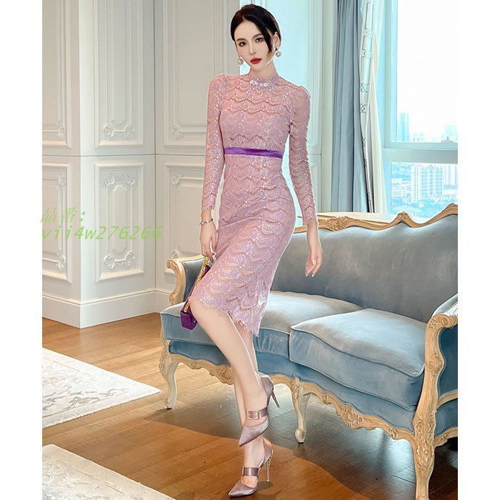 シースルーレース刺繍 ハイウエスト長袖膝丈タイトワンピース 紫 パーティー ドレス キャバ 韓国 セクシー スナック vii4w276266の検索結果