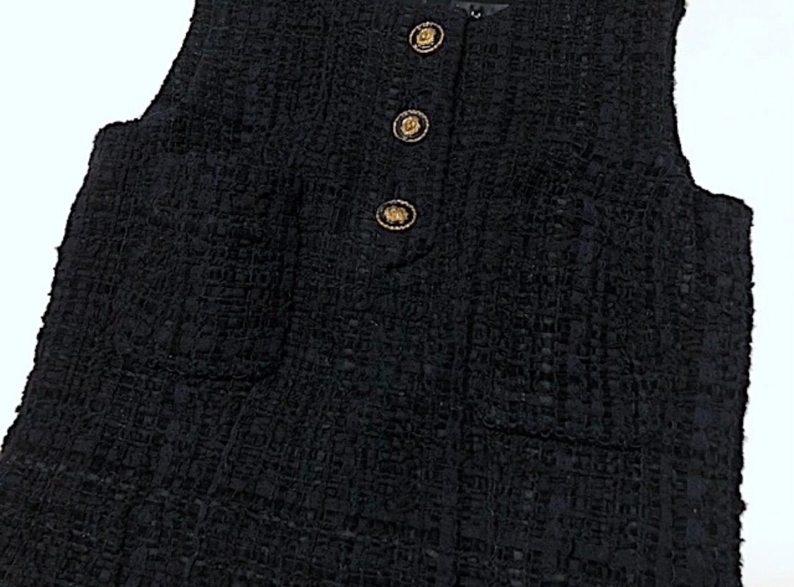 品 CHANEL シャネル P71094 V62492 ツイードドレス ノースリーブ ワンピース ココマーク ボタン 36 S-M 黒 2A48 BLACKFEMALETHERAPIST_ORG