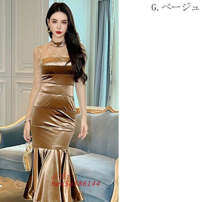 シースルーレース長袖 ミモレ丈タイトベルベットドレスワンピース 黒 ベージュ 結婚式 お呼ばれ パーティー 韓国 ドレス hax5a586144の検索結果