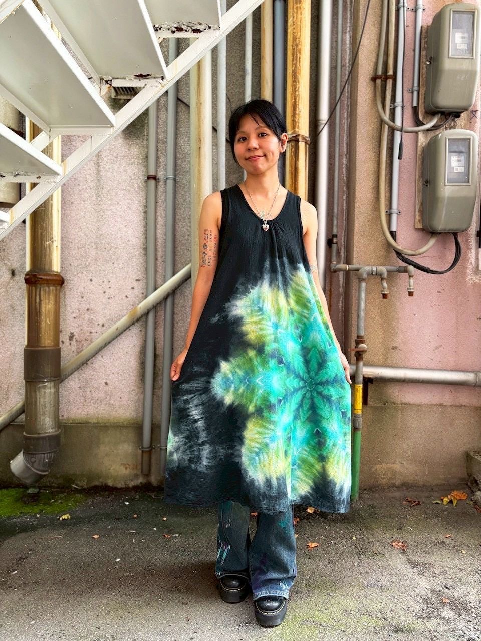 タイダイ染め ノースリーブワンピース 黒 ブラックビューティ 美しい幻想的なスノーフレイク HD24-83の検索結果