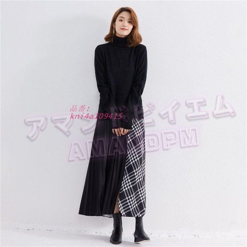 2025 ワンピース レディース ロング丈 ニット ドッキングワンピ 切り替えワンピース 大 春秋冬 ビッグシルエット 長袖 無地 A字 タートルネック 体型カバー kni4a109415 BLACKFEMALETHERAPIST_ORG