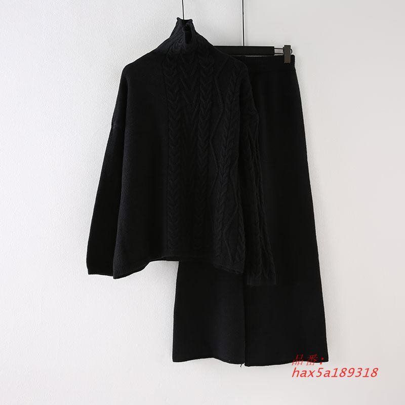 セットアップ レディース ニット 秋冬 ニット ワイドパンツ 長袖 上下セット ハイネック カジュアル ゆったり 部屋着 セーター hax5a189318 BLACKFEMALETHERAPIST_ORG