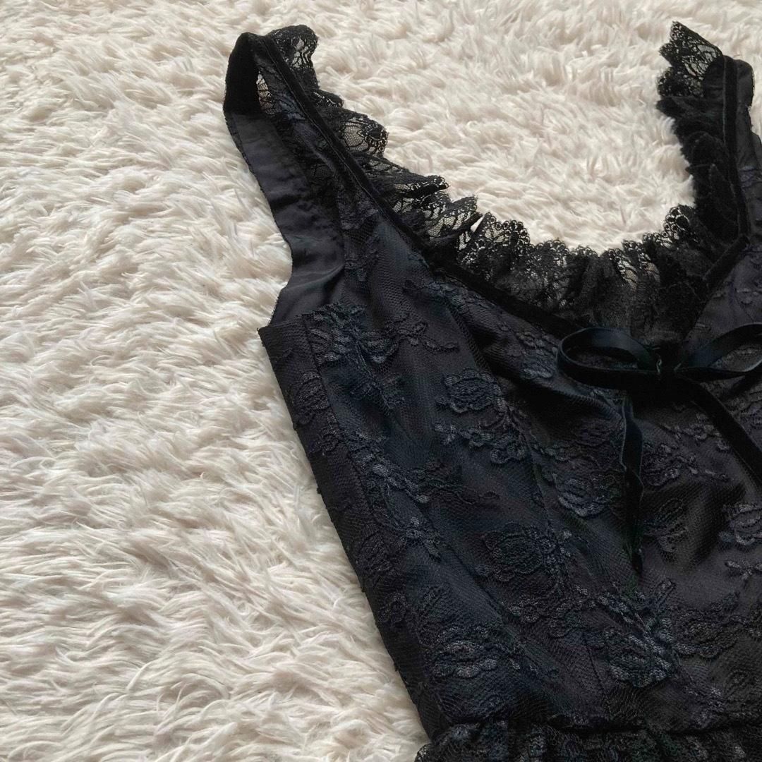ANNA SUI アナスイ ヴィンテージ ビンテージ Y2K ライン 総レース ノースリーブワンピース キャミワンピース フロア Aライン ベロアリボン 黒 ブラック 4サイズ BLACKFEMALETHERAPIST_ORG